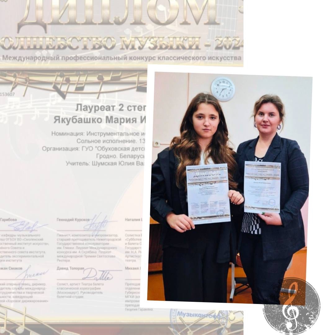 II Международном профессиональном конкурсе классического искусства «Волшебство музыки 2024» и стала обладательницей диплома Лауреата II степени. Учитель ШУМСКАЯ Ю.В.