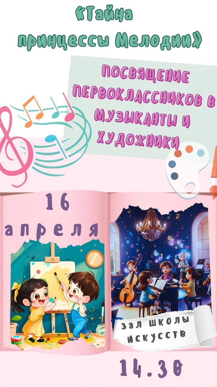 Уважаемые родители! Приглашаем ваших талантливых детей на торжественное посвящение в музыканты и художники "Тайны принцессы Мелодии"!