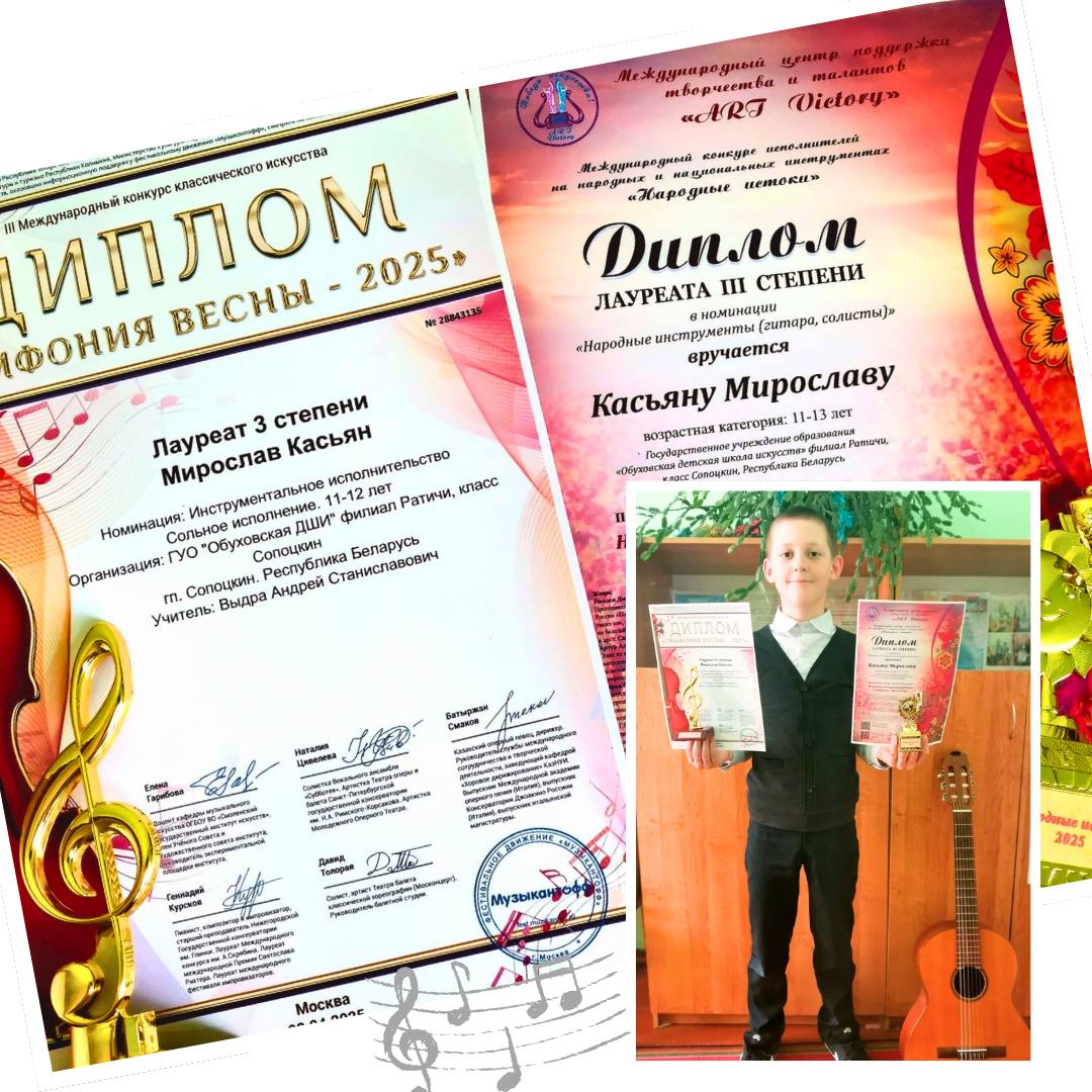 Учащийся по классу гитары (филиал Ратичи класс Сопоцкин) Мирослав КАСЬЯН поучаствовал в двух конкурсах проходящих в г.Москва: