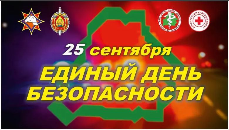 Министерством по чрезвычайным ситуациям Республики Беларусь совместно с заинтересованными министерствами и ведомствами Республики Беларусь 25 сентября 2025 года проводится Единый день безопасности, в задачи которого входит профилактика чрезвычайных ситуаций, а также, оказание первой медицинской помощи.