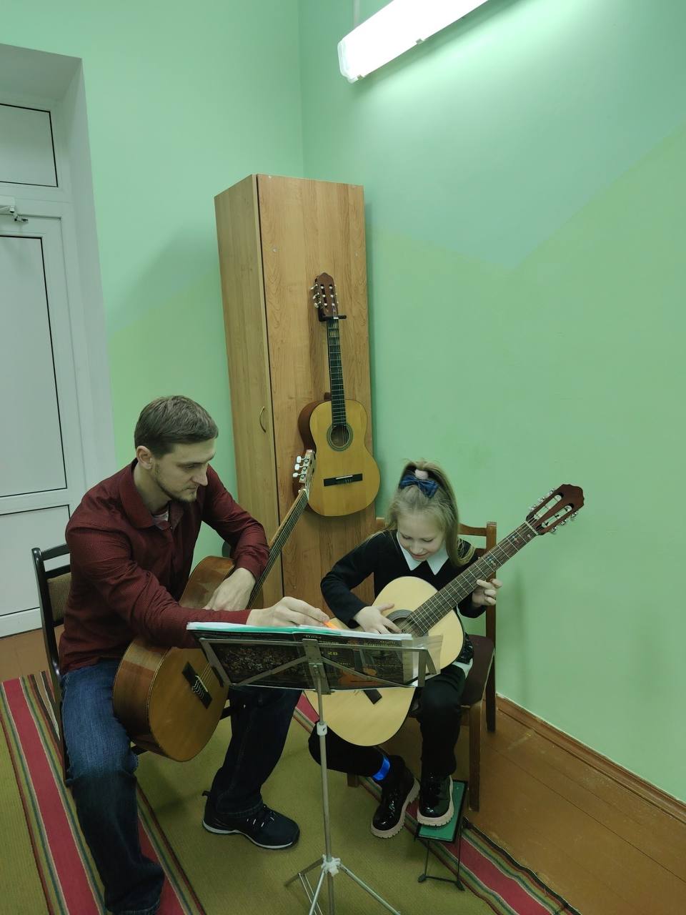 26 ноября в классе Сопоцкин филиала Ратичи учителем по классу гитары Выдра А.С. был проведён открытый урок с учащейся 2 класса Скурьят Ксенией на тему: «Работа над динамическими и тембровыми оттенками в классе гитары". Цель урока - закрепить знание основных динамических оттенков, научиться их применять на классической гитаре и добиться увеличения тембровой палитры гитары.