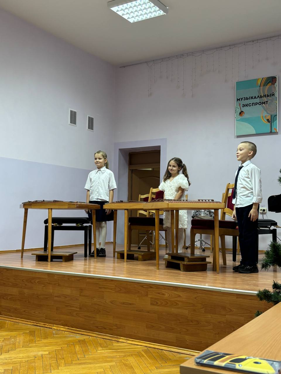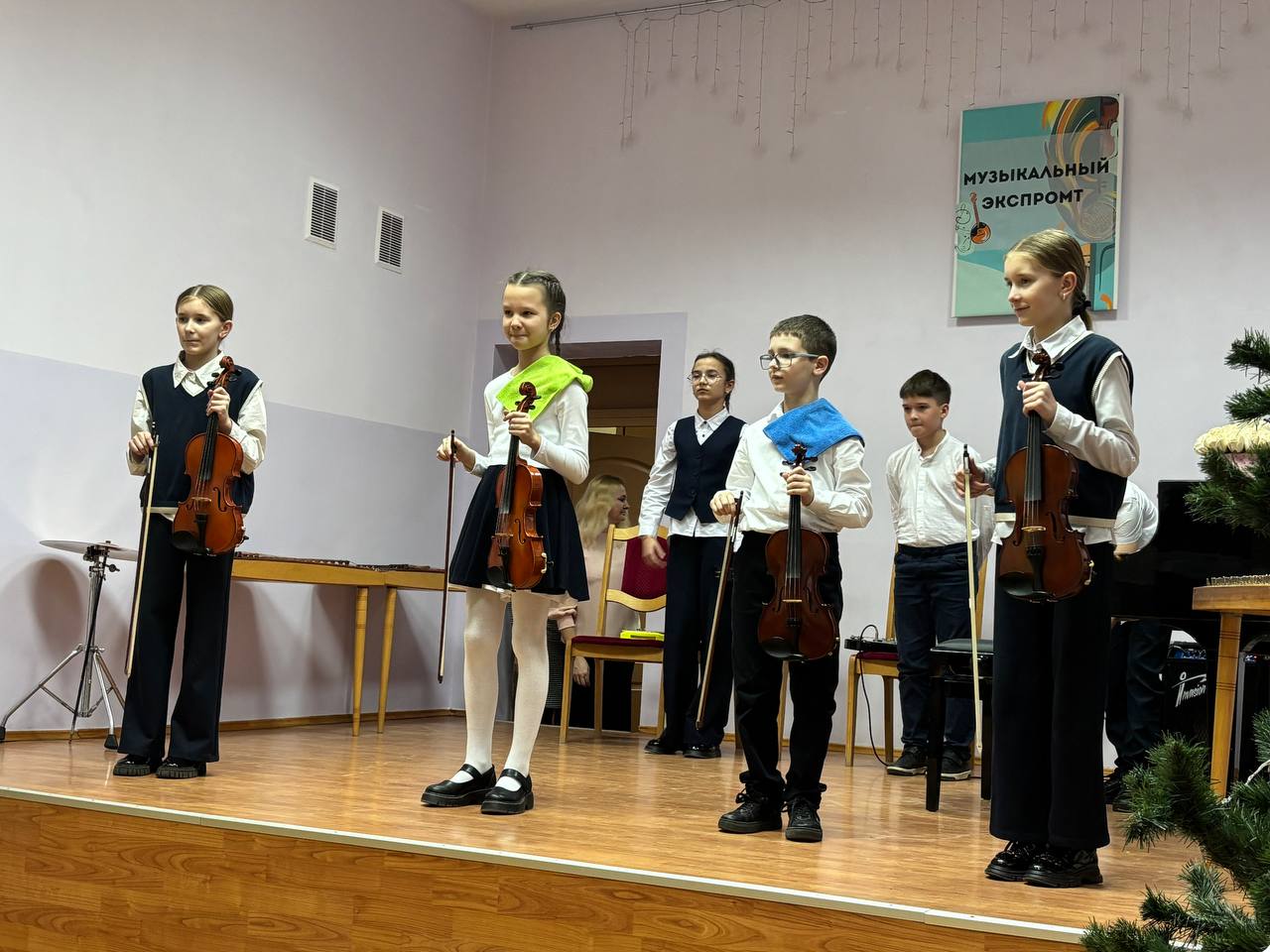 5 декабря в стенах нашей школы состоялся незабываемый агитационный концерт для учащихся государственного учреждения образования «Детский сад агрогородка Обухово». Это событие стало настоящим праздником музыки и творчества, подарив всем присутствующим массу положительных эмоций. На сцене выступали наши талантливые учащиеся, которые с волнением и радостью продемонстрировали свои навыки игры на различных музыкальных инструментах. Звучали мелодии на рояле, гитаре, скрипке и других инструментах, создавая атмосферу настоящего музыкального волшебства. Каждый номер был тщательно подготовлен, и ребята показали высокий уровень мастерства, что не могло не впечатлить юных зрителей.