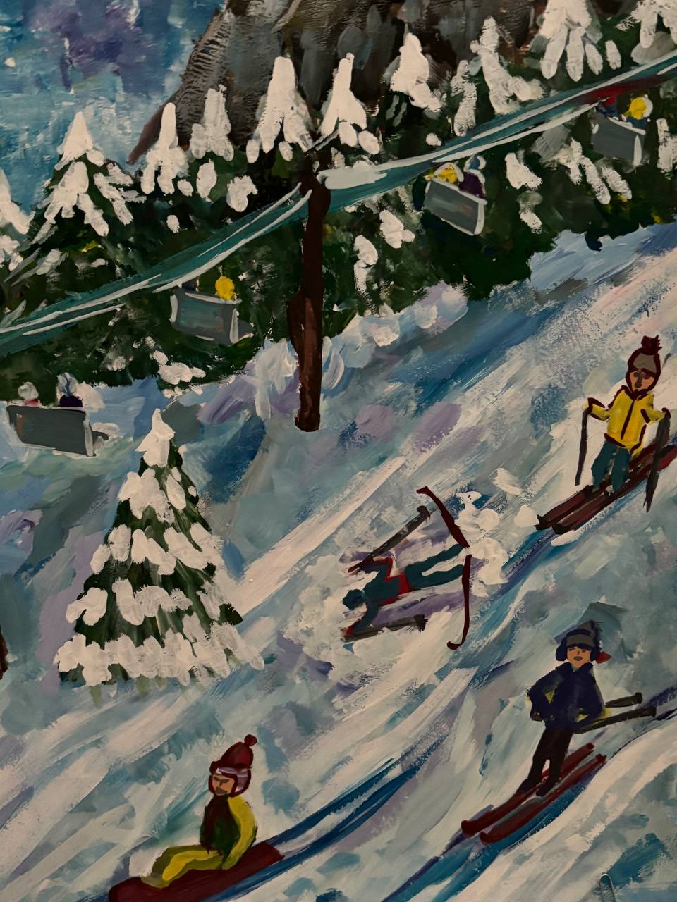 Снежные пейзажи, украшенные ёлки и радостные сценки из жизни – всё это наполняет выставку теплом и уютом.