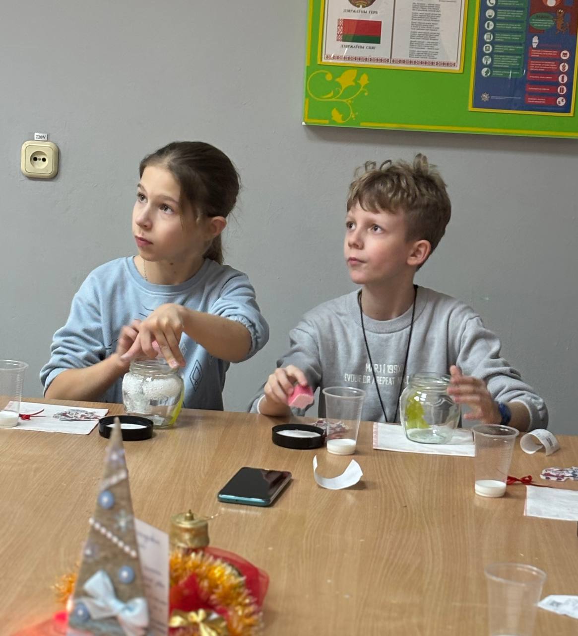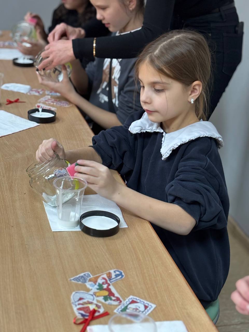 На мастер-классе ❄️"Свет зимы в твоих руках"❄️ дети создавали оригинальные подсвечники своими руками. Каждый участник расписал стаканчик, проявляя свою фантазию и творчество. Внутри подсвечника разместили искусственный снег и свечу, что создало атмосферу зимнего волшебства. Результаты работы детей порадовали всех, и каждый унес домой свой уникальный творческий сувенир.